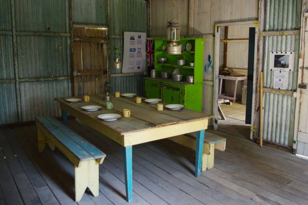 Yöpymisen lisäksi työntekijät myös peseytyivät, yöpyivät, valmistivat ruokaa ja söivät Keinikämpässä. Peseytyminen tapahtui keinikämpän ulkopuolella sadevedellä täytetyn pesukaukalon äärellä. Keinikämpän ruokasalissa on keittiönurkkaus pöytä, jonka ääreen asetuttiin ruokailemaan. Maailman Raitin keinikämpän keittiön ja ruokasalin esineet ja astiat ovat kaikki alkuperäisiä Australiasta ja ovat olleet käytössä farmilla.