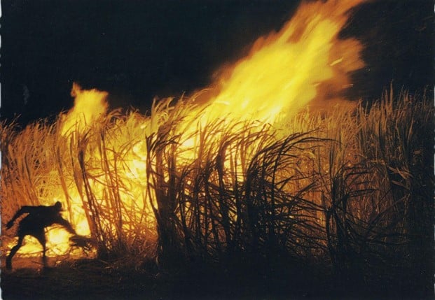 Ensin kypsynyt sokeriruoko poltettiin, mikä helpottaa sen hakkuuta. Ruoko palaa erittäin korkeissa lämpötiloissa, mutta nopeasti, joten sen sokeripitoisuus ei kärsi. Sitten ruokoa aletaan kaatamaan veitsen avulla, viedään riveihin ja hakataan vielä latvat poikki. Sitten ruoko lähti raiteilla kulkevan kärryn avulla farmille ja siitä tavarajunalla kohti seuraavaa määränpäätänsä, irtosokeriterminaalia.