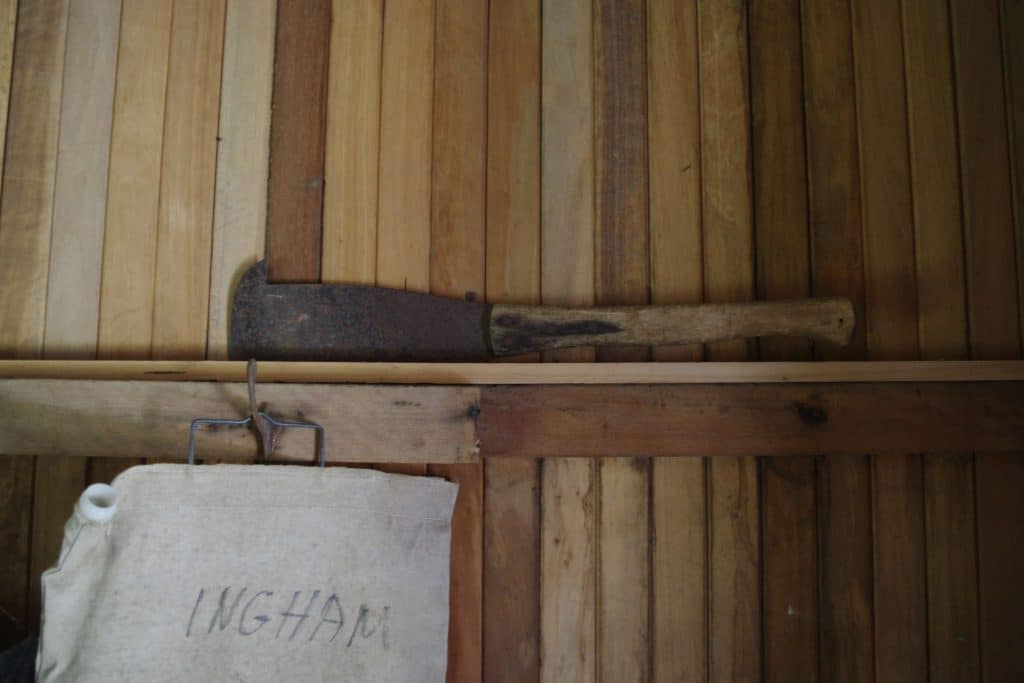 Työvaatteeksi keininleikkaaja sai villakankaisen paidan. Materiaalina villa lämmittää kylmällä säällä, mutta pysyy myös viileänä kuumalla helteellä. Sokeriruoko kasvaa Australian trooppisella alueella, joten lämpötila nousee talvea kohden todella korkealle. Peltisen asuinparakin lämpötila oli kuumimpina aikoina lähes sietämätön. Työvälineenä keinileikkaamiseen käytettiin keiniveistä, jolla ruoko hakattiin katki.